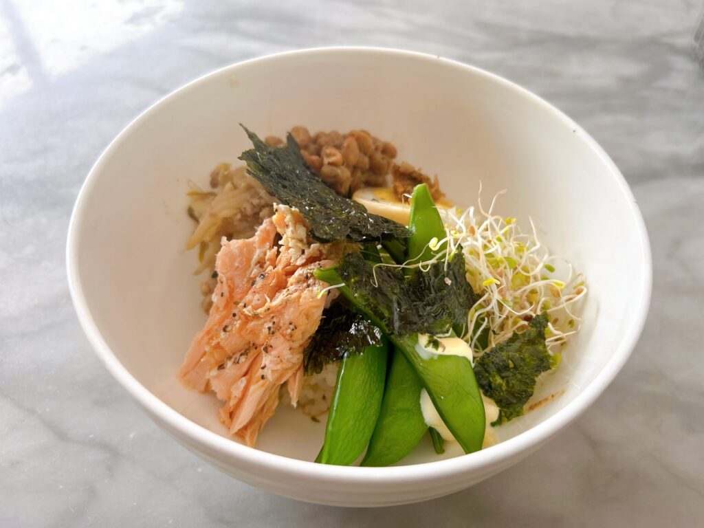 納豆、アルファルファ、煮卵、